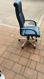 Vendo 2 sedie da ufficio con rotelle e braccioli Comode, pratiche e ideali per lunghe ore di lavoro o studio. Dimensioni: Altezza 120 cm – Larghezza 63 cm – Profondità 55 cm Dotazioni: Braccioli, ruote piroettanti, struttura ergonomica Condizioni: Entrambe in buono stato. Una delle due presenta un’usura più evidente sul poggiabraccio, motivo per cui ha un prezzo leggermente inferiore. Perfette per home office, scrivania studenti o postazioni di lavoro dinamiche.
