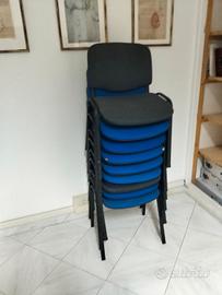 Vendo 9 sedie in stoffa colore blu(7) grigio (2) con struttura in ferro di colore nero in ottimo stato. Costo singola sedia 20 euro. Vendibili anche singolarmente .Prezzo trattabile
