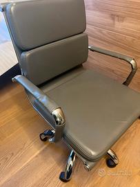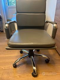 Set di due sedie da ufficio dal design moderno. - Rivestimento in similpelle grigia. - Struttura e braccioli in metallo cromato. - Base a stella con ruote per facilitare lo spostamento. Vendo anche singolarmente (50€)