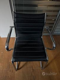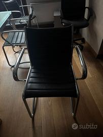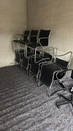 vendesi n 11 sedie da ufficio. struttura in metallo e rivestimento seduta e schienale in pelle nera. Ottimo stato. Il prezzo si riferisce al singolo pezzo.