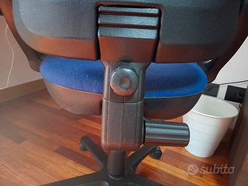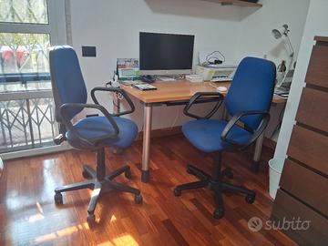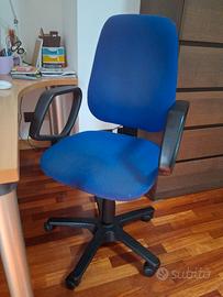 Vendo sedie da ufficio colore blu. Entrambe le sedie hanno le rotelle e la seduta è regolabile in altezza. Buone condizioni. Ritiro a domicilio a carico dell'acquirente.