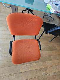 n.7 sedie da ufficio impilabili. Seduta e schienale imbottiti, colore arancione. Ideale per sala riunioni. €.20,00 caduna