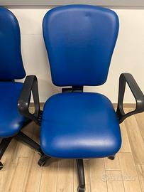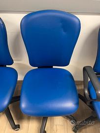 N.4 sedie da ufficio blu come in foto. Tre senza braccioli e una con braccioli.