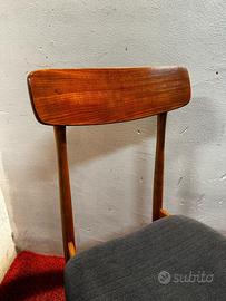 Sedie danesi in teak anni60 con seduta in velluto blu in ottkmo stato disponibili 6 pezzi ,il prezzo si riferisce a singola sedia
