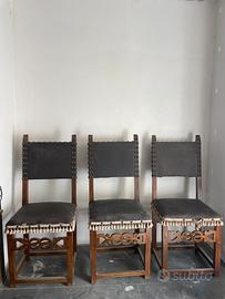 3 sedie in cuio fiorentino con qualche difetto