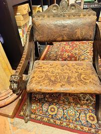 Sedie basse, legno e cuoio decorato. vendo solo in coppia. non spedibili. Non trattabili