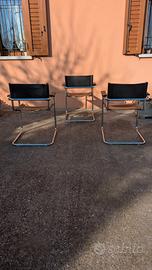 Tre poltrone in pelle e metallo cromato basate sul modello B34 di Marcel Breuer pubblicato negli anni '30.