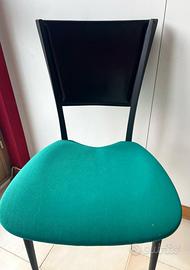 Quattro sedie design vintage anni 80 Bontempi. Nuove. Erano in uno showroom. Due sedute e due schienali di ricambio. Struttura in ferro . Schienale in cuoio. Seduta in microfibra. 95 euro l’una