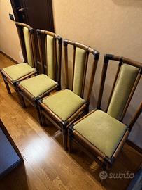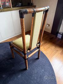 Set di n° 4 sedie design Arch. Fabrizio Smania, bambù e tessuto, sedute imbottite, buono stato di conservazione, anni '80.