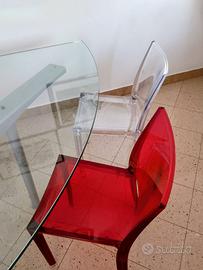 Vendo 2 sedie moderne in policarbonato, una *rossa* e una *trasparente*. Leggere e facili da pulire. Ideali sia per ambienti moderni o da mixare con arredi più classici.
