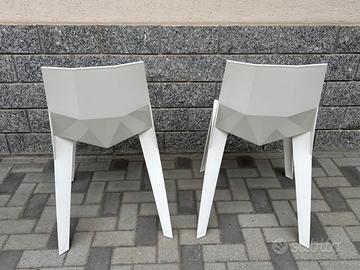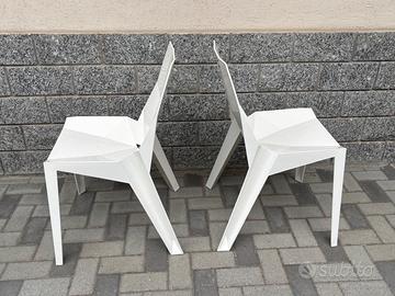 Coppia di sedie dal design contemporaneo, con struttura in plastica rigida bianca lucida e seduta sfaccettata ispirata allo stile origami. Ideali per ambienti moderni e professionali, interni minimal, terrazzi