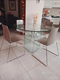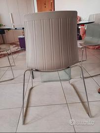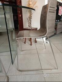 N. 4 Sedie design impilabili con struttura a slitta in metallo cromato e scocca in policarbonato color castoro