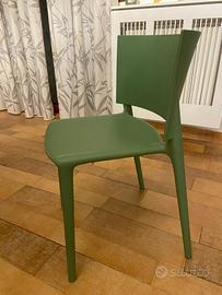 Vendo 4 sedie designer moderno di colore verde realizzato in polipropilene. Adatto per uso interno ed esterno.