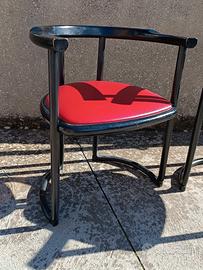 Struttura in ferro verniciato e legno laccato nero. Seduta imbottita color rosso.