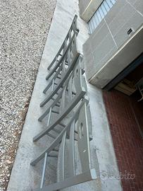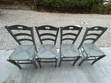 Vendo 4 sedie di legno dipinte di grigio (sia la struttura che l’impagliatura).