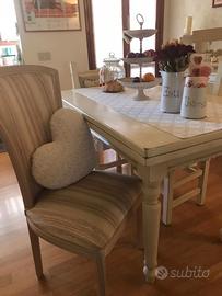 Sono 4 sedie acquistate c/o il prestigioso negozio "L'Arca Rosa" a Porto Cervo, sono in legno sbiancato e foderate in raso. Hanno ancora il cartellino con il prezzo originale di lire 700.000 l'una. Ritiro in loco
