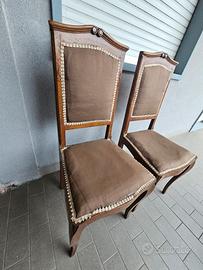 Vendo per inutilizzo coppia antiche sedie di noce massello con seduta e schienale in tessuto imbottiti