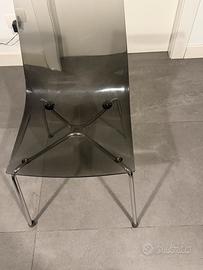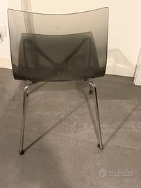 Set di 4 sedie modello Slim, disegnate da Roberto Foschia, produzione Softline Allkit, primi anni 2000. Scocca in metacrilato trasparente color grigio fume', struttura cromata. In ottime condizioni, possono presentare lievi segni coerenti con l’età.