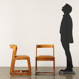 Coppia di sedie in legno di faggio tinto con imbottitura in espanso e