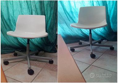 Sedia girevole a 360°, movibile con carrello a cinque ruote. Schienale ergonomico con profilo curvo, seduta confortevole. Colore bianco perla. Modello/marca Snille by Ikea, con targhetta. Nuova.