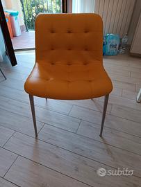 Vendo 4 sedie Bontempi modello Kuga, con struttura in alluminio e e seduta in pelle premium gialla. Dimensioni seduta 55x58 cm, altezza seduta 50 cm. Abbinati alle sedie ci sono anche 2 sgabelli. Prezzo sedie (4pz) 250€, prezzo sgabelli (2 pz) 70€