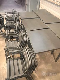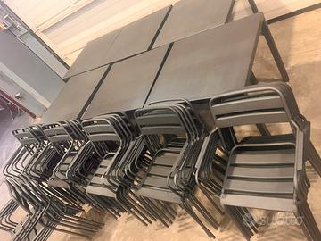Vendo 30 sedie e 6 tavolo 1mx1m in ferro colore nero/grigio brunito . Vendo in blocco No perditempo