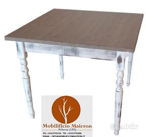 - N. 01 Tavolo 4 Gambe Tornite In Legno Color Bianco Laccato Vintage Con Piano Colore Grigio Coloniale 70x70x3 (Disponibili Anche Altre Dimensioni 80x80 - 90 x 90 - 60x60) e Rettangolari
