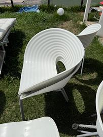 Vendo poltroncine design da esterno e tavoli in prolipopilene impilabili. Buone condizioni. Alcune poltroncine hanno i piedi da riverniciare. Prezzo in privato