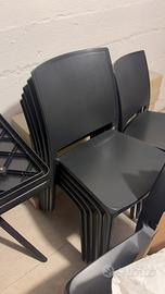 Vendiamo tavoli e sedie di plastica di colore nero di qualita Vendiamo singolarmente o in blocco 20 a tavolo 10 a sedia Oppure 150€ tutto Il prezzo non é trattabile