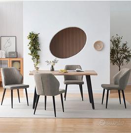 Set 4 sedie pranzo in ecopelle grigia con schienale e seduta imbottita grigio chiaro, per soggiorno, tempo libero, sedie angolari in ecopelle con schienale e seduta imbottita.