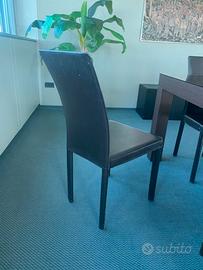 12 sedie di pelle marrone testa di moro, di design moderno e in discrete condizioni, a un prezzo imbattibile di 25 euro al pezzo.