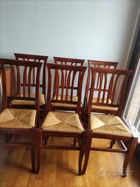 6 sedie in legno massello realizzate da falegnameria artigiana. Piccole imperfezioni da sistemare. Euro 10 cadauna oppure euro 50 tutte e sei. cell. 3474234901