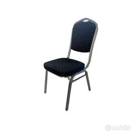 Sedie EVENT per conferenze, riunioni, banchetti, ricevimenti. Sedile con schienale curvato dotato di supporto lombare in tessuto blu, rosso, nero, verde e gambe in metallo colore oro o argento.