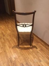 N°4 SEDIE FINEMENTE RIVESTITE E (imbottite) CON PREGIATO TESSUTO IN SETA. Per contatti si prega di utilizzare solo il mio telefono(non rispondo a messaggi e chat) Tel. 3337992108 tutti i pomeriggi anche festivi . Tante grazie e saluti ps. prezzo trattabile