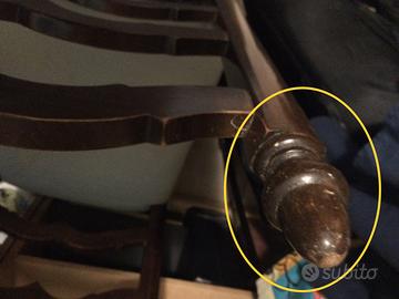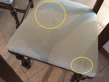 Presenza di qualche graffio nella parte lignea e di qualche macchia sul rivestimento della seduta imbottita (le imperfezioni sono descritte dalle foto allegate).