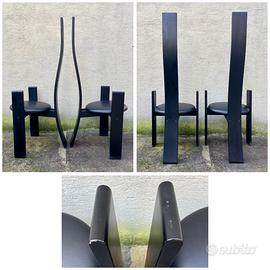 Coppia di maestose sedie Golem SD51 disegnate dal maestro Vico Magistretti nel 1968 per Poggi, suggestionato dai lavori di Mackintosh.