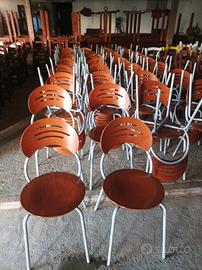 sedie impilabili struttura in ferro e seduta e spalliera in legno. Disponibili 56 sedie. Prezzo 12 euro l'una