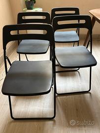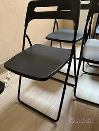 Vendo 4 sedie pieghevoli IKEA in ottime condizioni, colore nero, con struttura in metallo resistente e seduta/schienale in plastica.