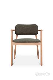 Questo modello di sedia è caratterizzato dalla seduta e dallo schienale imbottiti e rivestiti. Munita di comodi braccioli.