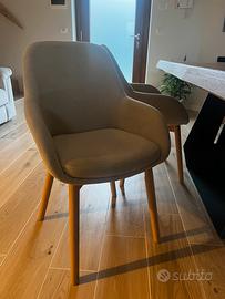 Vendo 5 sedie imbottite con seduta comodissima e braccioli laterali, color beige, tessuto smacchiabile! Gambe in legno. Usate ma ben tenute no danni no macchie. Prezzo 250 per 5 sedie!