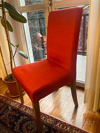 Due sedie imbottite Ikea struttura gambe legno massiccio. Rivestimento sfoderabile tessuto rosso.