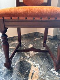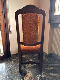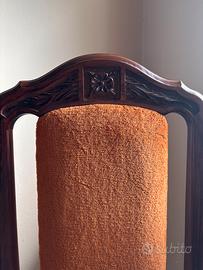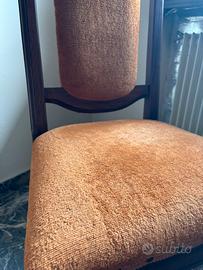 Vendo n.8 sedie in stile classico, imbottite. Tessuto vellutato color bruciato e legno lavorato.