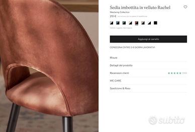 Sedia imbottita in velluto Rachel, colore rosa antico. 2 ancora disponibili.