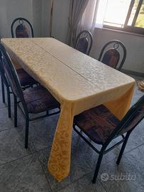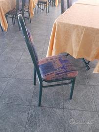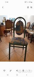 Sedia in metallo verde con seduta e schienale imbottiti, rivestiti in tessuto fantasia blu e ocra. Solida, comoda. Ideale per cucina, sala da pranzo o taverna. ottime condizioni generali.