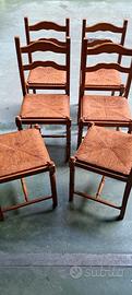 4 sedie con sedute in paglia,struttura in legno perfette condizioni, colore noce 20 € a sedia
