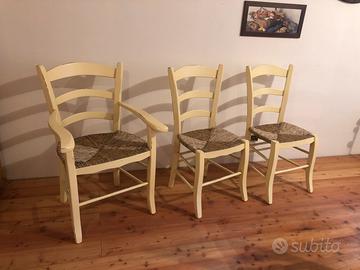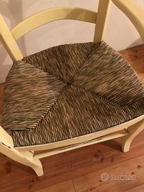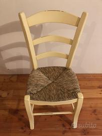 6 Sedie massicce colore avorio impagliate di larga seduta. 5 normali + 1 padronale Condizioni nuove mai usate per sbaglio acquisto. Adattissime per taverna Vendo in blocco.
