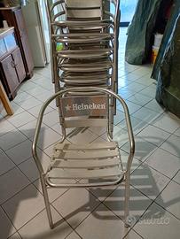 Vendo 9 sedie in acciaio brandizzate Heineken, struttura solida e resistente, perfette per esterno, giardino, terrazzo, bar o eventi.