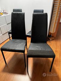 Quattro sedie colore nero in alluminio da rifoderare, imbottitura in ottimo stato.