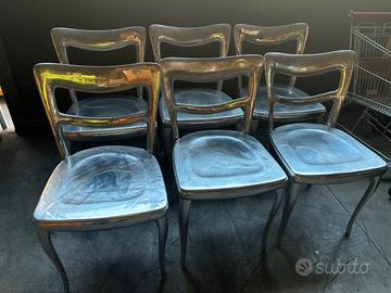 N. 6 sedie in stile in allumnio nuove. Necessitano di una lucidata. Qeuste sedie sono praticamente nuove e di listino costavano € 4.630 🚚 Possibilita di trasporto e consegna e prezxo da concordare separatamente dall’ acquisto