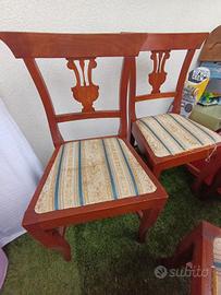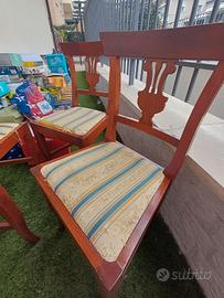 4 sedie in arte povera in rovere usate , la seduta e' un po' consumata